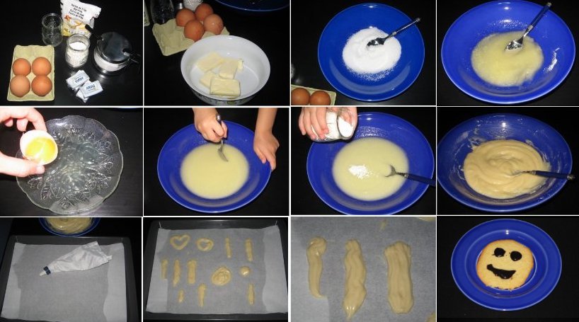 Y si queréis darle un toque más divertido, siempre puedes hacer formas diferentes, con la misma masa, y posteriormente decorando por ejemplo con sirope de chocolate, como podéis ver en la foto.