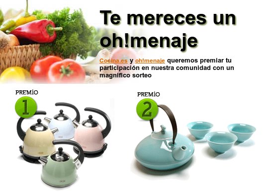 ¿Quieres llevarte una kettle eléctrica y un juego de té de diseño? Cocina.es y Oh!menaje acaban de lanzar un sorteo a través de Twitter y Facebook, en el que optar a ganar uno de estos dos estupendos premios es tan fácil como escribir un tweet (en Twitter, claro) con uno de estos dos textos: