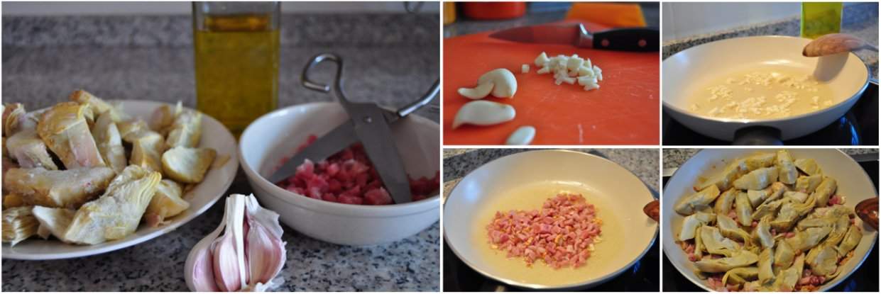 Ingredientes de las alcachofas con jamón (para dos personas):