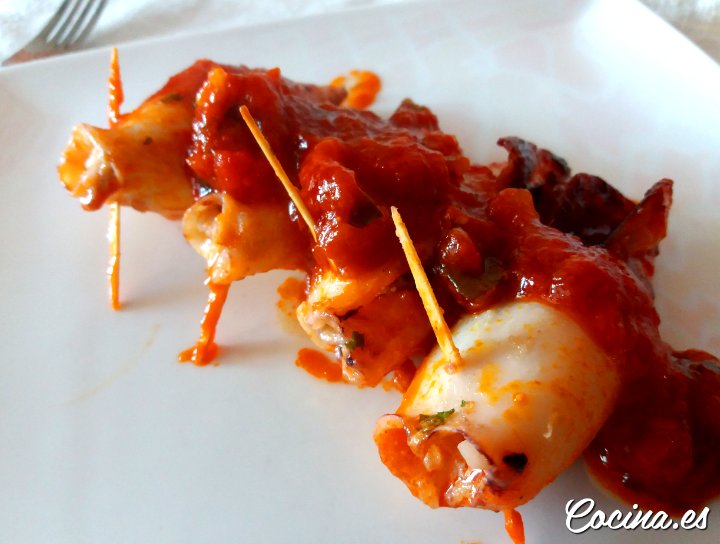 Cómo hacer Chipirones Rellenos de Gambas en Salsa de Tomate: