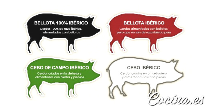 - Un jamón con etiqueta blanca es jamón ibérico de un cerdo de cebo; un jamón de un cerdo de raza ibérica (al menos, un 50%) que come únicamente pienso, y que no vive en la dehesa, sino en un criadero.